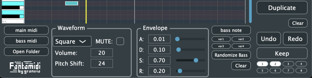 Try countless main and bass combinations in seconds. Fantamidi generates main and bass MIDI together, so you can quickly audition many musical pairings and find ideas that instantly click.